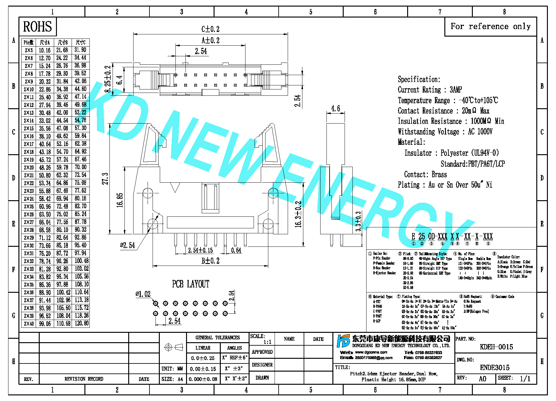 产品编码:KDEH-0015 产品规格:2.54MM传统牛角,直针